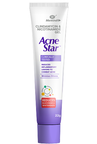 Packed with clindamycin and nicotinamide, AcneStar Gel is clinically tested to help reduce your acne in 7 days. It minimises oiliness, reduces blackheads, whiteheads, inflammatory lesions and combats acne effectively.